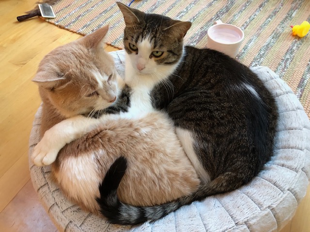 Yes. This is different than with one kitty who seeks you out as comfort all the time. Alfie and Peanut Butter find comfort together. They are most happy when in their bed together and Peanut Butter usually purrs loudly when he climbs into the bed with Alfie. We are eager to have them cuddle more with us, and we will be patient.