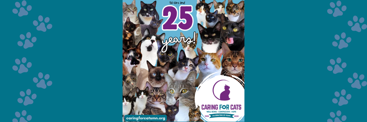 All of us at Caring for Cats are grateful for your support. Everything we do is a community effort done out of love for our cats. Here’s to a wonderful 25 years and many more to come!