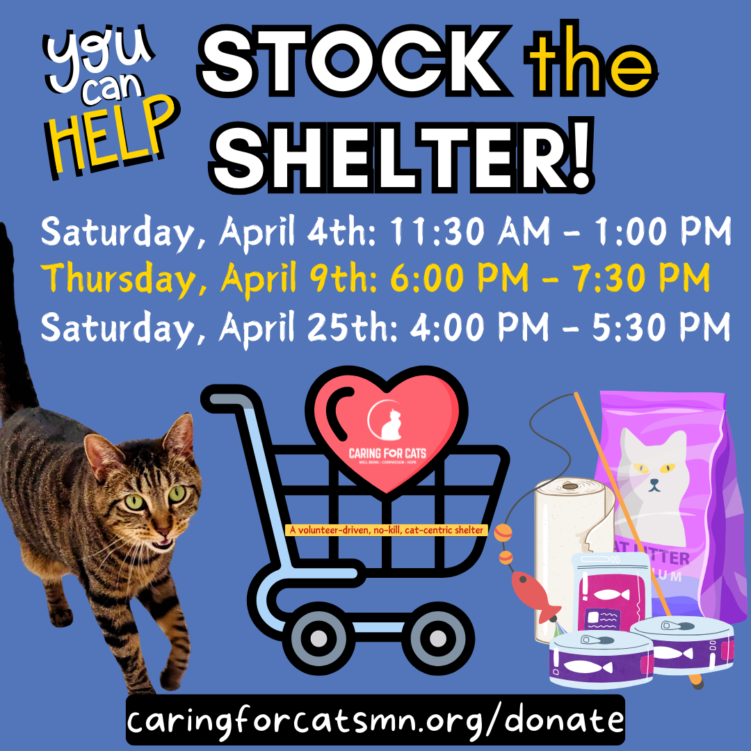 Please contact us at cfc@caringforcatsmn.org to coordinate a drop off time for your in-kind donations.