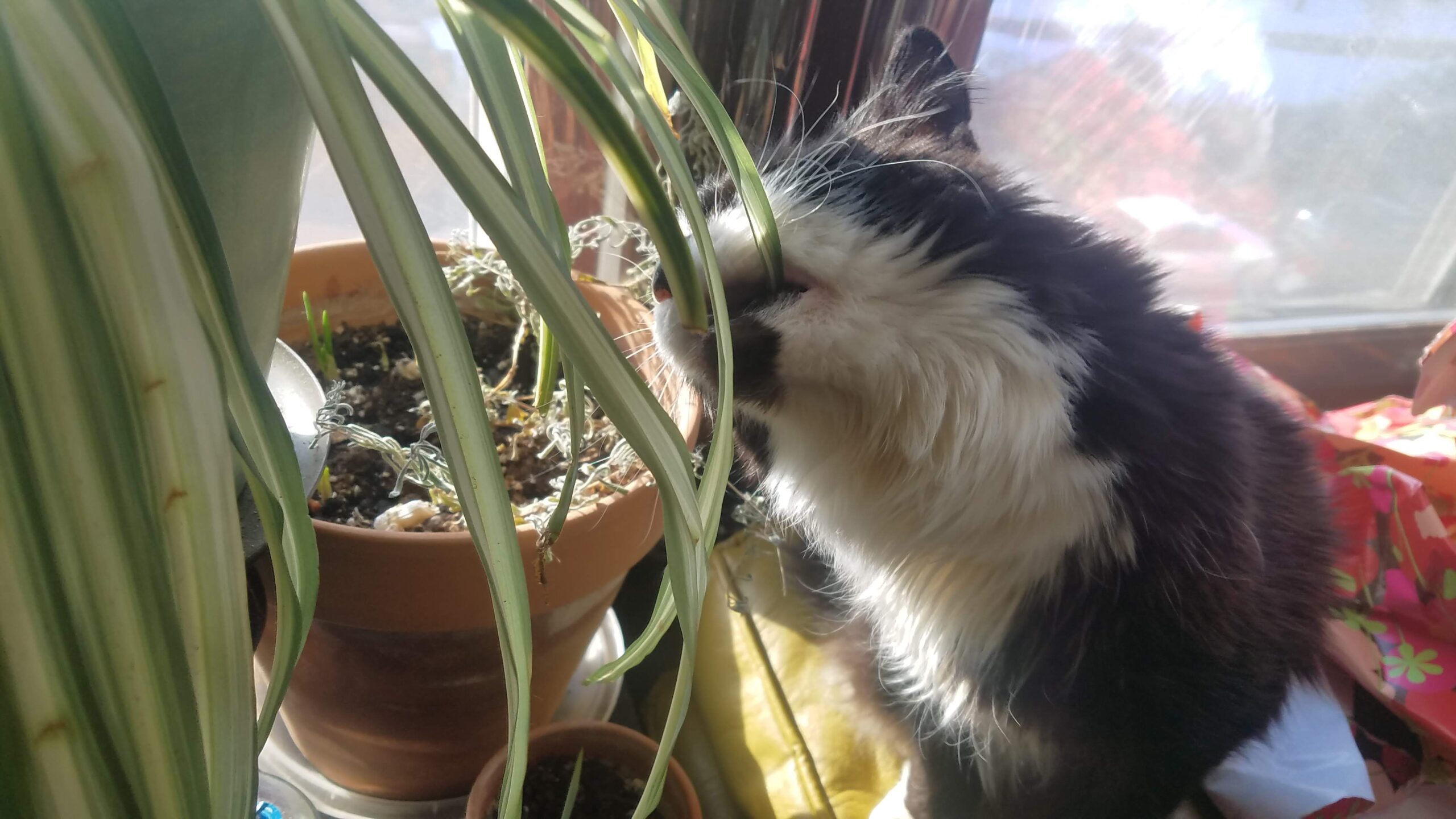 • Spider plants (this is what you see Sugar and Les munching on in the photos)
